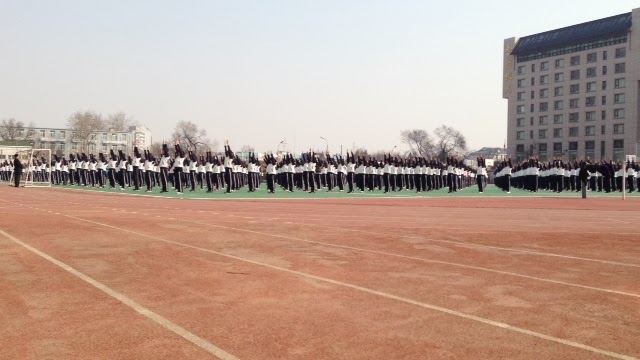 | All of the Beijing No. 4 students participating in their daily exercise routine |